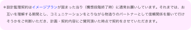 *1. 上記の料率は建設省告示第1206号及び建設省住指発第148号の建設省住宅局長通達による『建築士事務所の業務報酬算定指 針』2004年版を参考にしています。*2. 戸建住宅以外の建物用途(又は併用)につきましては上記告示の算定基準を基に、ご相談させて頂きます。*3. 上記「工事費」は建物の本体工事の金額です。