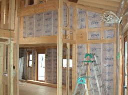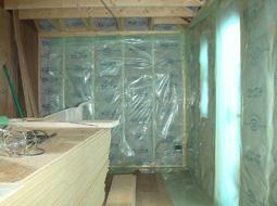 03月18日 | 壁断熱材・防湿シート | 内部壁に断熱材取付 その上に防湿シート貼りを行っています。 |