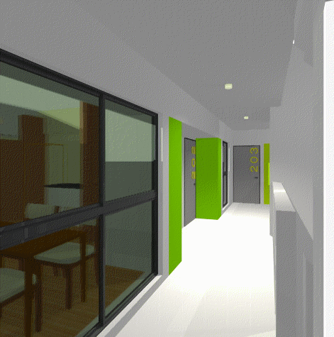 SOHO用として外廊下側にリビングを配置しています。
