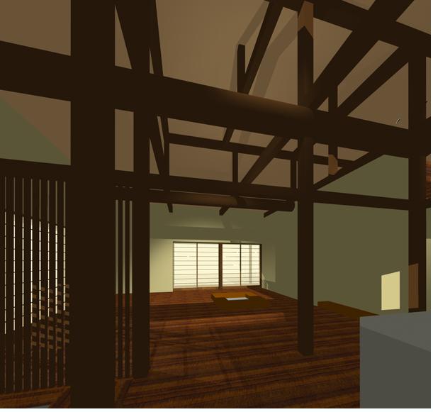 間取りはシンプルに、気のおけない仲間が集まるいろりが一つ真中にあるのと、壁一つ隔てて水廻りです。